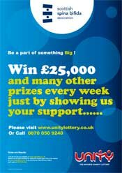 The Scottish Spina Bifida Association have signed up with Unity Lottery - a lottery with a difference. Not only do you, our supporters have the chance to win either, £5, £25, £1,000 or £25,000 every week but the SSBA will receive 50p from every £1 entry played!