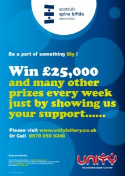 The Scottish Spina Bifida Association have signed up with Unity Lottery - a lottery with a difference. Not only do you, our supporters have the chance to win either, £5, £25, £1,000 or £25,000 every week but the SSBA will receive 50p from every £1 entry played!