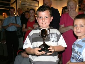On September 2nd the exhibition was lucky enough to be visited by the Duke and Duchess of Hamilton who presented prizes to the winners of the Childrens art competition. The overall winner is pictured below with his trophy.