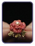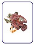 Inspired by Burns' poem Red, Red Rose, this unique and beautifully crafted ring is set with extremely rare Tsavorite (green Garnets) and pink Sapphires, then crowned with a fabulous round brilliant diamond, all in an 18ct gold setting which has been engraved "one of one", "RB 250 - CH 150", as well as being hallmarked by the Assay Office.